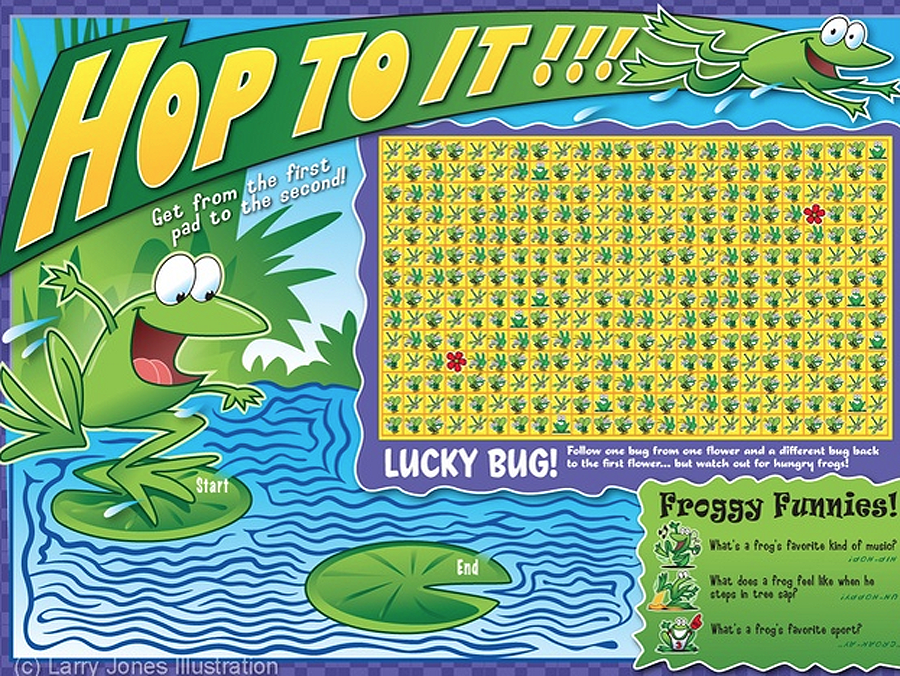 Frog Maze Illustration Digital illustration of frog maze – Hop To It! for Highlights Magazine. Art by Larry Jones.