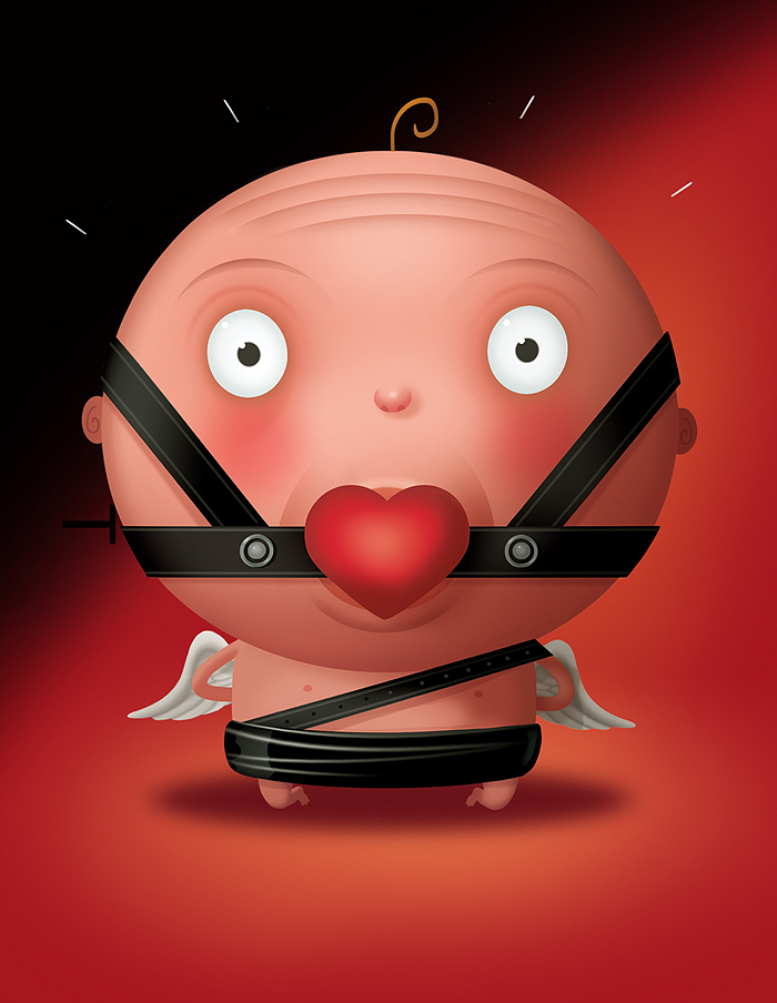Humorous digital illustration of cupid for greeting card. Art by George Schill.