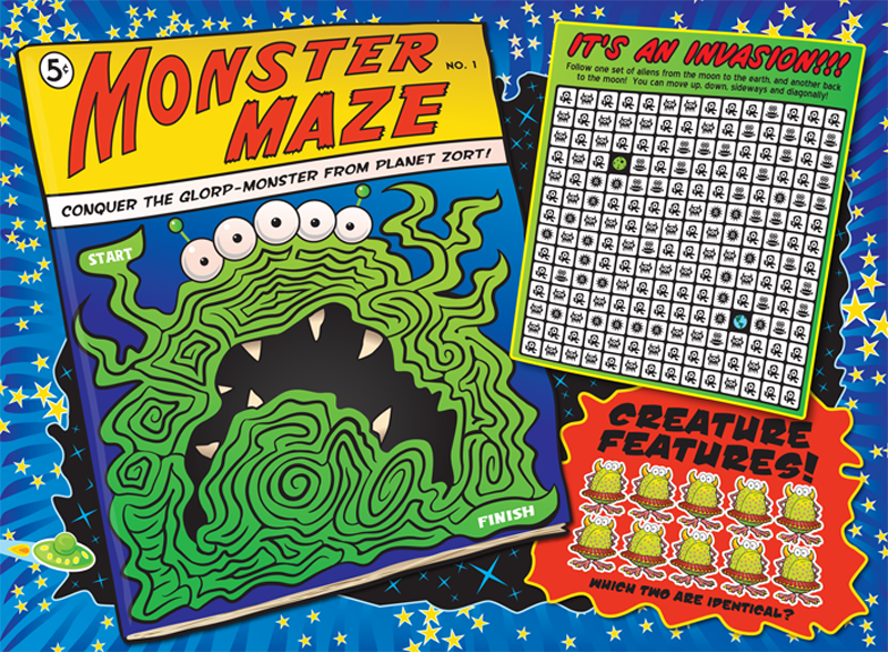 One of our fun projects for this year was a series of mazes to be used in a Mazes Mats book for Publications International. Geared for children 4 and up, Larry Jones illustrated mazes that were kids placemats for fun on the run! Designed as easy-tear pages, kids could use them as “boredom busters” to take anywhere – in the car, to a restaurant or waiting room – wherever they choose! Here are a few of the mazes that Larry created.