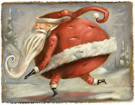 Our modern Santa Claus is a composite figure, drawn from the history, legends, and folklore of many countries. He evolved from a Saint, was demoted to a somewhat evil gift bearer at times, and finally became the jolly, robust character that children know and love today. Over the years our artists have illustrated many Santas for Christmas projects – here are a few of them. Enjoy them – they will bring a smile to your face during this holiday season!