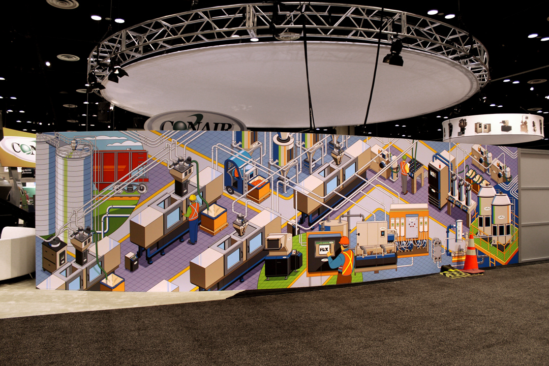 It’s always great to see your artwork on site! Our client just sent photographs of the murals that Ron Magnes created for the Conair Trade Show Booth. See blog below. They were a big success and look quite impressive at the Conair booth!
